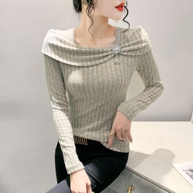 ビッグカラーオフショルダーニットトップス