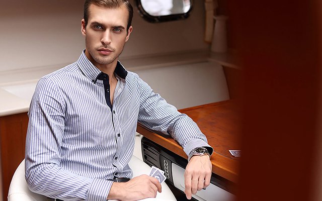ジャガード織のメンズ長袖シャツ